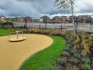 Other people involved in the Woodford Garden Village build include Marples Landscapes who took on the initial build and groundworks, DCM Surfaces for laying the wetpour safety surfacing, MAC GROUNDWORK CONTRACTORS LTD – a Midland based company carrying out groundworks, surfacing and installation projects who laid the asphalt on the pathways, Dave Moorcroft and the Idverde St Helens team for completing all the softworks to dress the area. Plus a mention to Jack Wilkins and the AHS-LTD team, Harrowden Turf and Dave Roach for supplying materials for the projects. Great service as always.