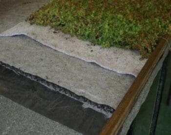 - Once you’ve checked that your roof is thoroughly waterproof, you can begin to build up the layers you need for the green roof. The first layer you will need is a good quality, strong root barrier, something like a polybutyl pond liner is perfect!