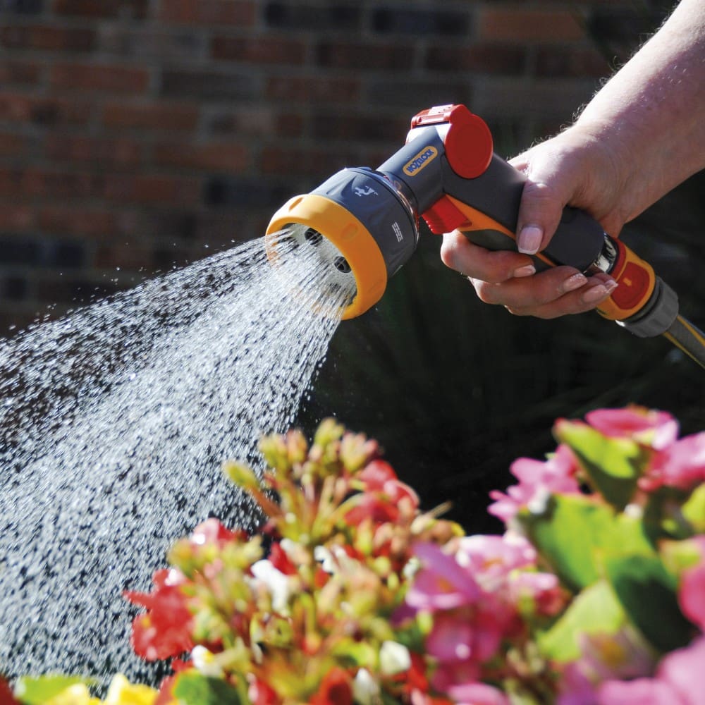 - Seven spray patterns to suit every garden and cleaning task: Accordingly, choose Mist for nurturing delicate plants. The Fine Rose for seedlings. The Cone for flower beds. Flat for washing cars or windows, Aerated for gently watering compost or pots, Fast Fill for buckets and cans and Powerful Jet for stubborn dirt.