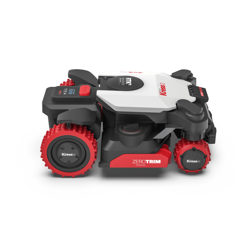 Designed for demanding landscapes, the Kress EyePilot® 4×4 KR283E combines RTK satellite positioning with vision-based awareness and a true four-wheel-drive system to deliver precise, stable navigation across complex terrain—without added hardware.