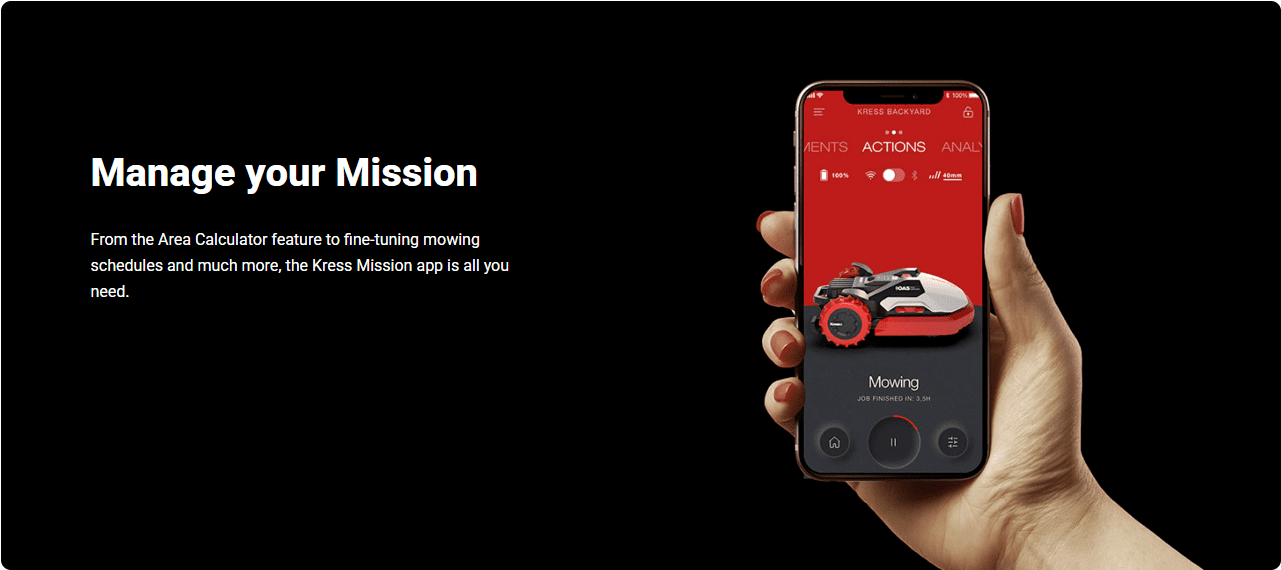 Kress autonomous mowers intelligently determine the optimal care for your grass. By being aware of the size of your lawn, weather conditions, and other key factors, a tailored mowing schedule is created on a daily basis.